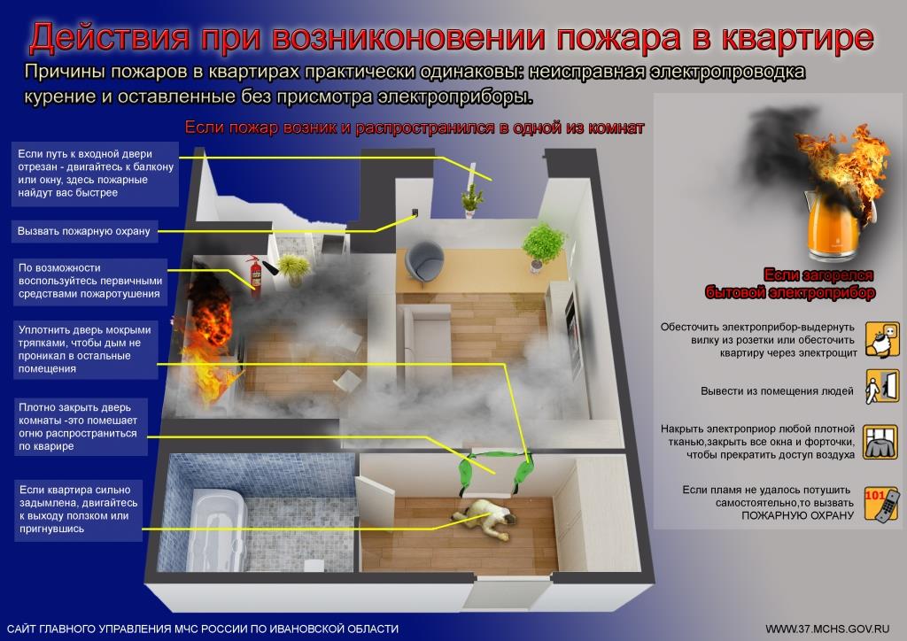 — в квартире — огнетушитель, кусок плотной трудногорючей ткани;